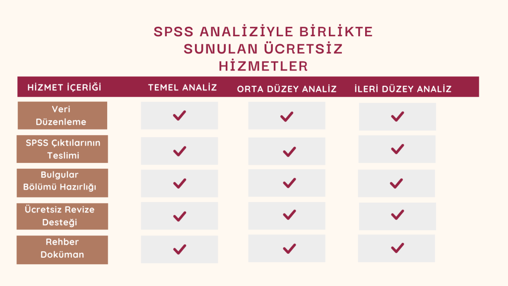 Hizmet Türü | 2025 SPSS Analiz Ücretleri | Açıklama |